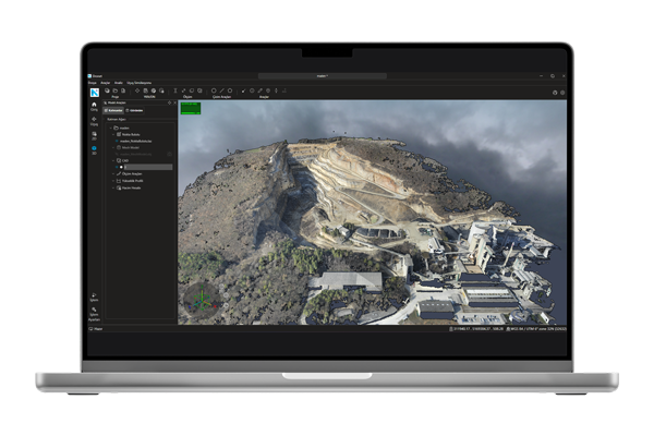The produced point cloud and mesh data can be used in various analyses and exported in different formats (.las, .laz, .obj, .glb, .dxf). Unwanted objects can be removed from the mesh model to perform volume analyses aligned with the natural terrain structure.